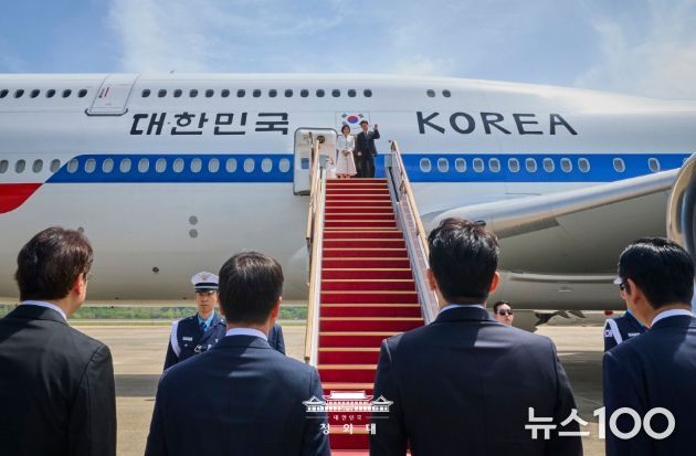 뉴스100 김동초 기자 | 이재명 대통령과 김혜경 여사는 5박 6일 일정의 인도 및 베트남 국빈 방문을 위해 19일 경기 성남 서울공항에서 대통령 전용기(공군 1호기)를 이용해 출국했다.