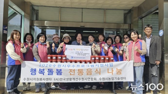 뉴스100 김동초 기자 | 수원시 권선구 권선2동행정복지센터는 지난 16일, (사)한국생활개선 수원시연합회로부터 정성이 담긴 고추장 1kg 40개를 기부받았다고 밝혔다.