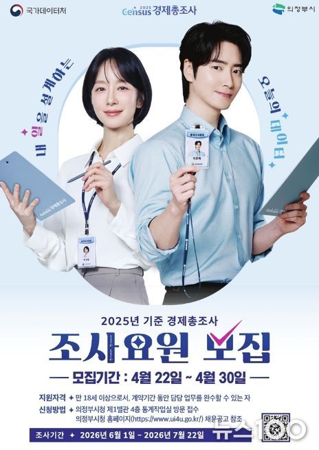 뉴스100 김동초 기자 | 의정부시는 6월 1일부터 실시되는 ‘2025년 기준 경제총조사’의 원활한 추진을 위해 조사요원 77명을 모집한다.