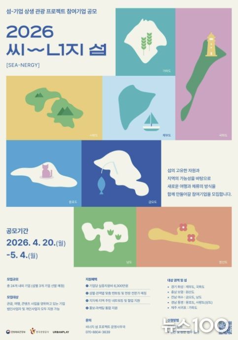 뉴스100 김동초 기자 | 화성특례시는 한국관광공사가 주관하는 ‘2026 섬-기업 상생 관광 프로젝트’에 선정돼, 제부도와 국화도를 대상으로 한 참여 기업 공모를 본격 추진한다고 밝혔다.