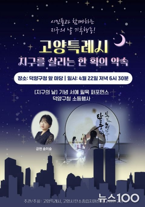 뉴스100 김동초 기자 | 고양특례시가 제56주년 지구의 날을 기념해, 오는 22일 저녁 8시부터 10분간 고양시 전역에서 소등행사를 진행한다.