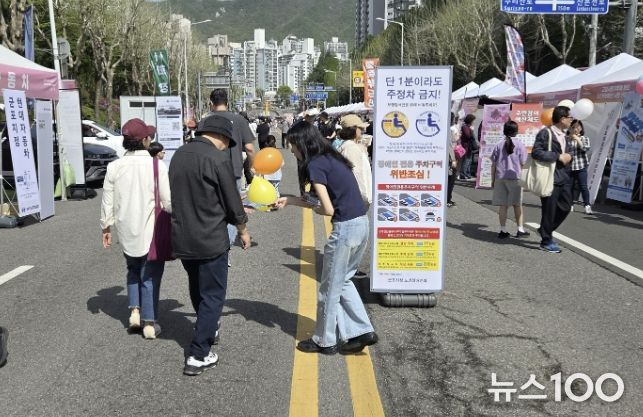 뉴스100 김동초 기자 | 군포시는 『2026 군포철쭉축제』 차없는거리 기간(4.19.)에 축제를 찾은 시민에게 장애인전용주차구역 홍보 캠페인을 펼쳤다고 전했다.