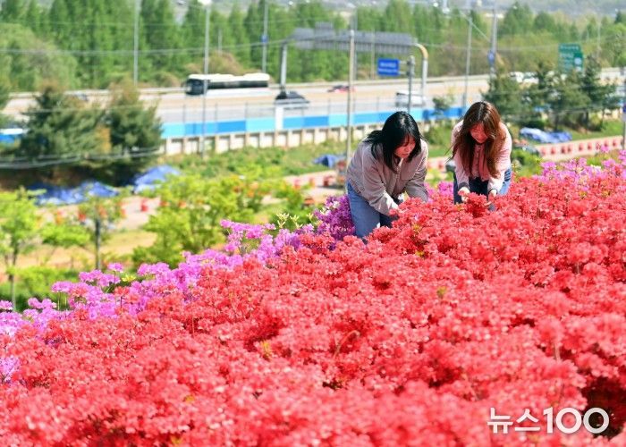약 1만 1천㎡ 부지를 가득 채운 영산홍은 잎보다 꽃이 먼저 피어나는 특성 덕에 빈틈없는 붉은 빛을 선사한다. 꽃길 어디서든 카메라만 대면 ‘인생 사진’을 건질 수 있다는 입소문이 퍼지면서 인스타그램과 블로그 등 사회관계망서비스(SNS)에서도 반응이 뜨겁다.