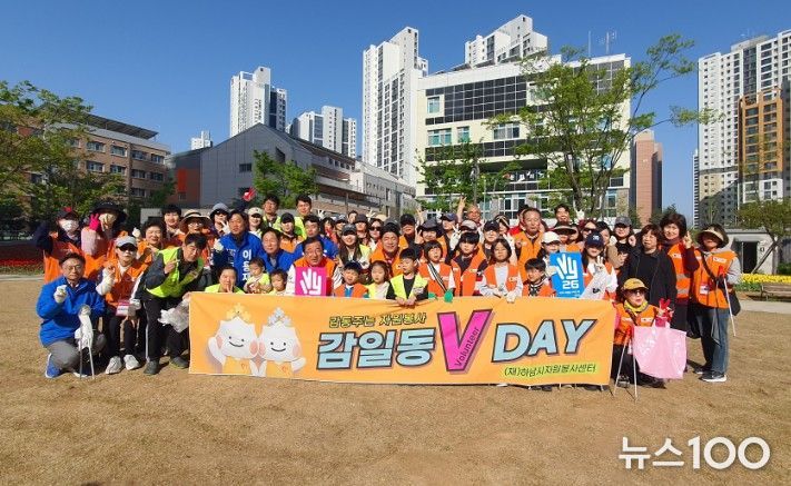뉴스100 김동초 기자 | (재)하남시자원봉사센터는 지난 18일, 자원봉사자 70여 명이 참여한 가운데 환경정화 캠페인“감일동 V-DAY”행사를 주민들의 적극적인 참여속에 성공적으로 마무리 했다.