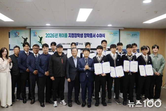 뉴스100 김동초 기자 | 안양시 인재육성재단은 지난 20일 케이폴의 기부금으로 선발된 2026 케이폴 지정장학생 장학증서 수여식을 개최했다.