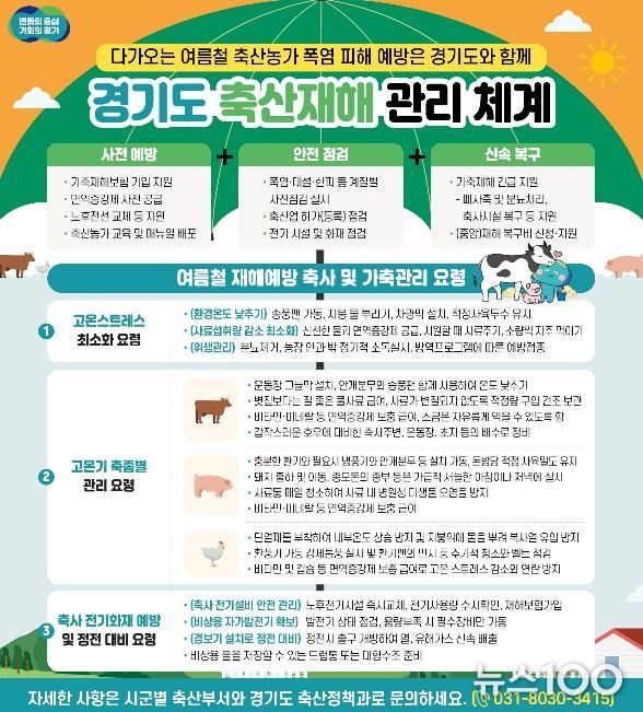 뉴스100 김동초 기자 | 경기도가 올여름 무더위로부터 축산농가를 보호하기 위해 예산 지원과 현장점검을 아우르는 전방위적 대응에 나섰다.