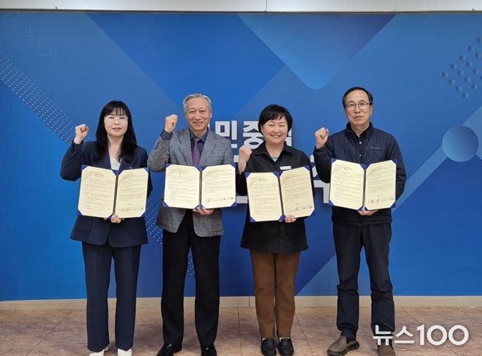 뉴스100 김동초 기자 | 파주시 교하동은 지난 21일, 교하동 행정복지센터에서 ㈜밀알(대표 김면식)·파주시 운정종합사회복지관·교하동 지역사회보장협의체와 함께 지역 내 의료 취약계층 대상 가정용 의료 침대 지원을 위한 ‘교하사랑 나눔가게’업무협약을 체결했다.