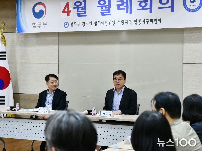 뉴스100 김동초 기자 | 수원시 영통구는 지난 21일, 법무부 청소년 범죄예방위원 수원지역 영통지구위원회(이하 ‘범죄예방위원회’) 주관으로 영통구청 상황실에서 4월 월례회의를 개최했다.