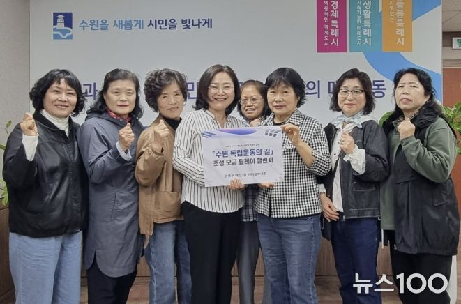뉴스100 김동초 기자 | 수원시 영통구 매탄3동은 지난 21일, 매탄3동 새마을부녀회가 ‘수원 독립운동의 길 조성 모금 릴레이’에 전 회원 동참 의사를 밝히며 뜻깊은 참여를 이어갔다고 밝혔다.