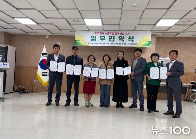 뉴스100 김동초 기자 | 이천시 중리동은 21일 중리동행정복지센터에서 지역사회와 학교가 함께하는‘지역연계 초등학생 행복성장 지원 협약식’을 개최하고, 지역 아동의 건강한 성장과 교육복지 향상을 위한 협력체계를 구축했다.