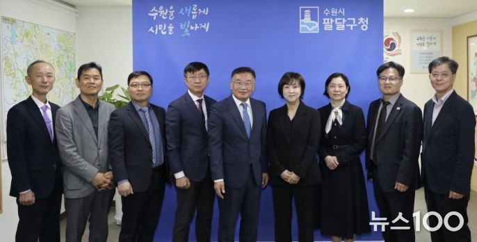 뉴스100 김동초 기자 | 수원시 팔달구는 지난 22일, 팔달구청 구청장실에서 수원시 관내 8개 직업계 고등학교 교장단을 초청해 ‘2026년 수원특례시 장안·권선·팔달·영통 구청장배(통합) e스포츠 대회’의 성공적인 개최를 위한 간담회를 가졌다.