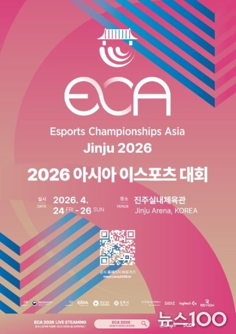뉴스100 김동초 기자 | 문화체육관광부가 주최하고 한국이스포츠협회, 경상남도와 진주시가 공동으로 주관하는 ‘2026 아시아 이스포츠 대회(Esports Championships Asia Jinju 2026)’가 4월 24일부터 26일까지 경남 진주실내체육관에서 열린다. 아시아 7개국에서 선수단과 관계자 등 150여 명이 참가하는 이번 대회는 기존 대회보다 참가국이 확대됨에 따라 역대 최대 규모의 아시아 권역 이스포츠 국가대항전으로 치러진다.