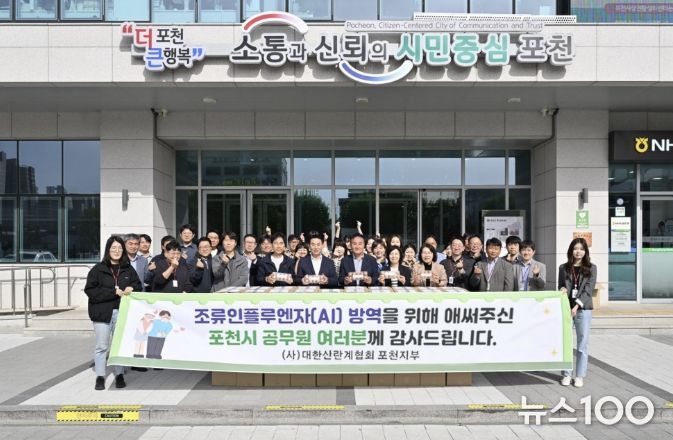 뉴스100 김동초 기자 | (사)대한산란계협회 포천지부는 2026년 4월 23일, 포천시에서 발생한 고병원성 조류인플루엔자(AI) 방역 활동에 헌신한 포천시 공무원의 노고에 감사의 뜻을 전하고자 ‘계란 나눔 행사’를 실시했다.