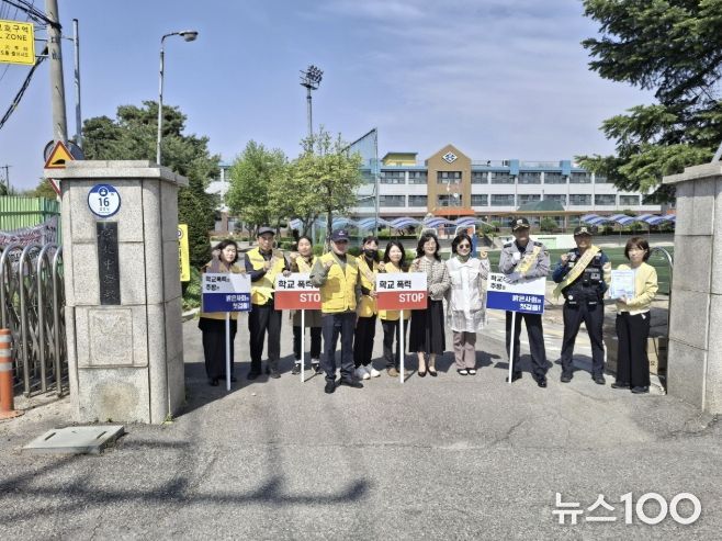 뉴스100 김동초 기자 | 포천시 가산면 청소년지도협의회는 지난 22일 학생들의 하교 시간에 가산면행정복지센터, 가산파출소와 함께 경북중학교 정문에서 학교폭력 예방 캠페인을 실시했다.