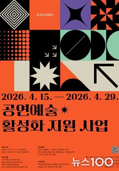 뉴스100 기자 | 경기문화재단은 경기도 내 유망 공연예술인과 단체의 창작 활동 및 작품 발표 기회 확대를 위해 '2026 공연예술 활성화' 공모를 시행한다.