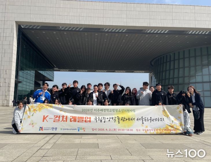 뉴스100 김동초 기자 | 안성시학교밖청소년지원센터는 지난 21일, 관내 이주배경 학교 밖 청소년 30명을 대상으로 한국 문화에 대한 친밀감을 높이고 사회 적응을 돕기 위한 ‘K-컬처 레벨업: 박물관부터 타워까지’ 프로그램을 진행했다고 밝혔다.