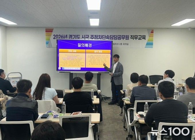 뉴스100 김동초 기자 | 이천시는 4월 23일, 24일 양일간 차량등록과 2층 회의실에서 경기도 11개 시군 주정차단속담당공무원 50명을 대상으로 도로교통법 및 주정차단속실무에 관한 직무교육을 실시했다고 밝혔다.