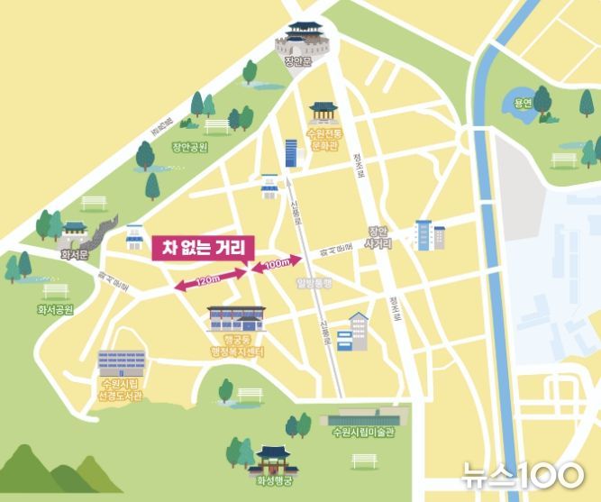 뉴스100 김동초 기자 | 수원시 행궁동 화서문로 34번지부터 신풍로 47번지까지 약 220m 구간이 5월부터 매주 토요일 ‘차 없는 거리’로 운영된다.