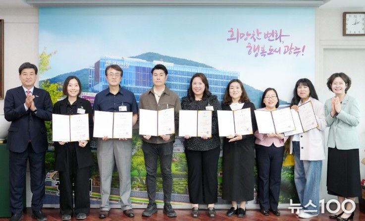 뉴스100 김동초 기자 | 광주시는 28일 시청 시장실에서 ‘2026년 광주시 명예 통역관 위촉장 수여식’을 개최하고 총 10명의 명예 통역관을 위촉했다.