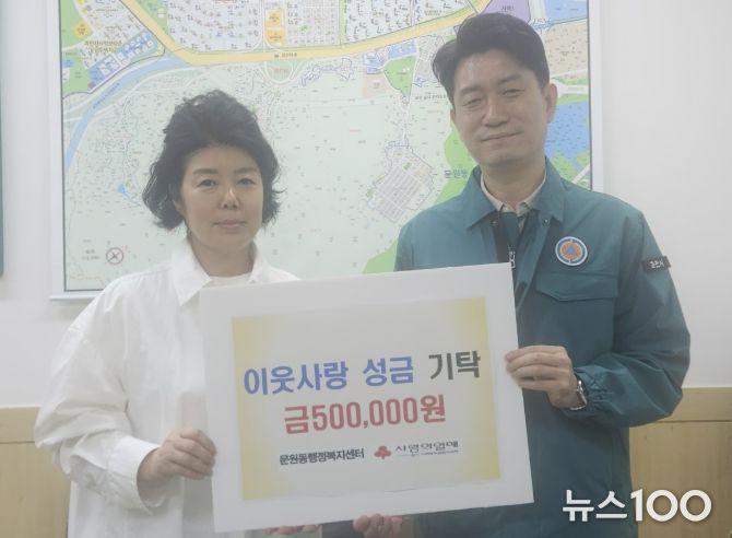 뉴스100 김동초 기자 | 과천시 문원동은 지난 28일, 공원마을 작가로 활동 중인 박희정 작가가 전시회와 바자회를 통해 마련한 수익금 50만 원을 어려운 이웃을 위해 기부했다고 밝혔다.