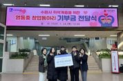 뉴스100 김동초 기자 | 수원 영통중학교 창업동아리 학생들이 창업 활동 수익금을 모아 수원시 취약계층 시민을 위해 기부했다. 1월 29일 수원시청 본관 1층 로비에서 열린 기부금 전달식에는 윤영숙 시민복지국장, 영통중학교 창업동아리 학생 등이 참석했다. 학생들은 직접 디자인·제작한 탁상용 달력 100개를 판매해 마련한 수익금 45만 원을 수원시에 전달했다. 수원시는 기부금을 취약계층 시민 지원을 위해 사용할 예정이다. 영통중학교 창업동아리 학생들은 “작은 나눔이지만 어려운 이웃들에게 도움이 되기를 바라는 마음으로 기부에 참여했다”며 “직접 만든 작품으로 나눔을 실천할 수 있어 기쁘다”고 소감을 밝혔다. 윤영숙 시민복지국장은 “학생들이 활동 수익금으로 이웃사랑을 실천한 모습이 대견하다”며 “따뜻한 나눔이 지역사회 전반으로 확산되기를 바란다”고 말했다. [뉴스출처 : 경기도 수원시]