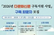 뉴스100 김동초 기자 | 수원특례시가 다문화가족의 한국 생활 적응을 돕기 위해 ‘다문화신문 구독 지원 사업’ 대상자를 모집한다. 언어·문화적 차이로 정보 접근에 어려움을 겪는 다문화가족에게 다문화 신문 구독을 지원해 정책·생활·교육·복지 등 한국 생활에 필요한 정보를 다국어로 제공하는 사업이다. 수원시에 주소를 둔 다문화가족, 이주민 지원 유관기관 등이 신청할 수 있다. 선정된 대상자에게는 3월부터 12월까지 월 2회 다문화신문을 무료로 보급한다. 집중 신청 기간은 2월 6일까지다. 거주지 동 행정복지센터를 방문해 신청하면 된다. 2월 6일 이후에도 상시 신청할 수 있지만, 모집 인원이 초과되면 대기자로 관리한다. 수원시 관계자는 “다문화신문은 언어소통이 어려운 다문화가족에게 한국 생활에 필요한 각종 정보를 다국어로 제공하는 사업”이라며 “다문화가정의 안정적인 지역사회 정착에 실질적인 도움이 되길 바란다”고 밝혔다. [뉴스출처 : 경기도 수원시]