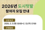 뉴스100 김동초 기자 | 부천시는 시민들이 텃밭 가꾸기를 통해 농업을 체험하고 자연과 공존하는 도시환경을 조성할 수 있도록 ‘2026년 도시텃밭’ 참여자를 모집한다. 텃밭은 부천영상문화단지 인근 문화동산텃밭(상동 529-38 외 2필지)이며, 신청 기간은 2월 2일 오전 10시부터 2월 13일 오후 5시까지다. 신청은 부천도시농업한마당 홈페이지 또는 부천시청 홈페이지 이벤트 창을 통해 가능하다. 모집은 일반회원, 특별회원, 단체회원, 도시농업공동체회원 등으로 구분해 총 400구획 규모로 진행된다. 1세대당 1구획만 신청할 수 있으며, 신청 시작일인 2월 2일 기준 주민등록상 주소지가 부천시여야 한다. 특별회원은 장애인, 만 65세 이상 경로자, 자녀 2명 이상 가정, 결혼이민자 또는 귀화자가 포함된 다문화가정을 대상으로 한다. 기준일은 모두 2월 2일이다. 단체회원은 관내 유치원, 어린이집, 학교, 법인 또는 단체의 대표자가 신청할 수 있다. 도시농업공동체회원은 구성원 5명 이상이며, 이 중 1인 이상이 도시농업 관련 교육 30시간 이상 수료한 공동체로, 대표 1인이 신청하면 된다.