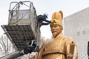 뉴스100 김동초 기자 | 수원특례시가 봄을 맞아 6일 팔달산에 있는 정조대왕 동상을 세척하고, 주변 환경을 정비했다. 정조대왕 동상에 겨우내 쌓인 먼지와 오염물질을 고압세척기로 제거하고, 산화된 부분도 깨끗하게 정비했다. 물과 중성세제를 혼합한 세척액을 사용해 동상 표면을 청소하고, 부드러운 천으로 닦아 먼지와 녹을 말끔하게 제거했다. 동상 주변 환경정비도 진행했다. 시민과 관광객들이 쾌적한 환경에서 정조대왕 동상을 관람할 수 있도록 주변 시설물과 관람 공간을 정리했다. 정조대왕 동상은 팔달산을 대표하는 상징물로, 많은 시민과 관광객이 찾는 수원의 주요 역사·문화 자원이다. 수원시는 정조대왕 동상을 정기적으로 점검하고, 관리하고 있다. 수원시 화성사업소 관계자는 “정조대왕 동상은 많은 시민과 방문객이 찾는 팔달산의 주요 시설물인 만큼 체계적으로 유지관리를 하고 있다”며 “정기적인 점검과 정비로 쾌적한 환경을 유지해 나가겠다”고 말했다. [뉴스출처 : 경기도 수원시]