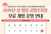 뉴스100 김동초 기자 | 안성시시설관리공단은 2026년 설 명절을 맞아 2월 14일부터 18일까지 5일간, 공단이 관리하는 공영주차장 중 전통시장 인근에 위치한 석정동 공영주차장과 동본동 공영주차장을 한시적으로 무료 개방한다고 밝혔다. 이번 무료 개방은 설 명절 기간 동안 전통시장 방문객 증가가 예상됨에 따라 주차공간 부족으로 인한 불편을 해소하고 보다 많은 시민이 전통시장과 인근 상권을 편리하게 이용할 수 있도록 지원하기 위해 추진됐다. 무료 개방되는 공영주차장 2개소를 제외한 나머지 주차장은 기존과 동일하게정상 유료 운영하며 이를 통해 주차 수요를 분산하고 교통 혼잡을 최소화하는 등 효율적인 주차장 운영을 도모할 계획이다. 또한, 안전사고 예방을 위해 차단기는 개방하지 않고 현장 안내 및 순찰을 강화하여 안전하고 질서 있는 주차 환경을 유지할 방침이라고 밝혔다. 이정찬 이사장은 “설 명절을 맞아 전통시장을 찾는 사람들이 주차 걱정 없이장을 보실 수 있도록 무료 개방을 결정했다.”며 “앞으로도 공영주차장의 공공성을 강화하고 지역경제 활성화에 기여할 수 있는 운영방안을 지속적으로 마련하겠다.”고