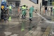 뉴스100 김동초 기자 | 수원시 팔달구은 지난 3일 수원역 광장 및 수원역 환승센터 일원에서 합동 환경정비를 실시했다. 이번 정비는 수원시 주관으로 진행됐으며, 김현수 수원시 제1부시장을 비롯해 권선·팔달 환경위생과, 안전건설과, 평동,서둔.매산동 행정복지센터, 수원도시공사, 수원다시서기노숙인종합지원센터 등 유관기관 관계자들이 참여했다. 참여자들은 수원역 광장과 환승센터 일대에 적치된 폐기물을 수거하고 살수차를 활용한 물청소를 실시하는 등 환경 개선 활동에 힘을 모았으며, 고압세척장비를 활용해 보도 표면은 물론 오염이 쉽게 누적되는 구간까지 세심하게 세척 작업을 진행하여 쾌적한 거리 환경 조성에 앞장섰다. 팔달구 관계자는 “앞으로도 지속적인 환경정비를 통해 깨끗한 거리환경을 조성·유지해 나가겠다”고 밝혔다. [뉴스출처 : 경기도 수원시]