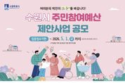 뉴스100 김동초 기자 | 수원특례시는 2027년도 예산 편성을 위한 ‘주민참여예산 제안사업’을 5월 1일까지 공모한다. 주민참여예산은 주민이 직접 지역에 필요한 사업을 제안하고 예산에 반영하는 제도다. 생활 불편 해소와 복지 증진 등 다수 주민이 혜택받을 수 있는 공공성 있는 사업을 누구나 제안할 수 있다. 제안 사업은 시·구 단위 사업과 동 단위 사업으로 구분한다. 시·구 단위 사업은 2개 동 이상을 대상으로 하는 사업이나 시·구·사업소 소관 주민생활 밀착형 사업이다. 동 단위 사업은 1개 동을 대상으로 하는 마을 문제 해결형 생활밀착 사업이다. 참여를 원하는 시민은 수원시 시정참여 플랫폼 ‘새빛톡톡’에서 ‘주민참여예산 제안’ 메뉴를 이용하거나, 수원시 홈페이지에서 ‘주민참여예산사업 제안’을 검색해 온라인으로 신청하면 된다. 시청과 구청, 동 행정복지센터 민원실에 비치된 사업제안서를 작성해 방문·우편으로 제출할 수도 있다. 시민이 제안한 사업은 부서 검토와 주민 의견 수렴, 주민총회, 주민참여예산위원회 심의 등을 거쳐 우선순위를 결정한다. 선정 사업은 예산안에 반영할 계획이다. 제안사업은 상시 제출할 수 있고, 마감일 이후 제출한 사업은 다음 연도에 검토