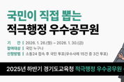 뉴스100 김동초 기자 | 경기도교육청이 공공의 이익을 높인 적극행정 우수공무원 선정을 위해 2025년도 하반기 대국민 심사를 실시한다. 도교육청은 창의적이고 능동적인 행정을 펼친 각 기관의 추천 사례를 접수해 1차 예선심사에서 우수사례 15건을 선정했다. 이를 대상으로 1월 26일부터 30일까지 ‘소통24’누리집에서 국민이 참여하는 온라인 투표 방식의 대국민 심사를 진행한다. 참여자는 1인당 3건의 우수사례에 투표할 수 있다. 본선 진출자는 예선심사 점수 60%와 국민투표 결과 40%를 합산해 최종 결정된다. 선발된 공무원에게는 교육감 표창과 포상금, 특별승급의 인사상 가점부여 등 다양한 특전을 제공할 계획이다. 이번 선발은 단순한 성과 평가를 넘어 적극행정의 모범사례를 널리 알리고, 공직사회 전반에 적극행정 문화를 확산시키는 의미가 있다. 특히 국민이 직접 우수공무원을 선정함으로써 정책 수요자의 관점이 반영된다는 점에서 공정하고 투명한 심사 절차가 마련될 것으로 기대된다. 도교육청은 앞으로도 국민이 체감하는 변화를 만들어낸 공무원의 노력을 널리 알리고, 적극행정을 일상적 공직문화로 조성하기 위해 지속적으로 노력할 방침이다. [뉴스출처 : 경기도교육청]