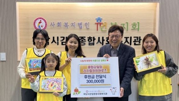 뉴스100 김동초 기자 | 하남시감일종합사회복지관(사회복지법인 휴먼복지회 운영)에서는 클럽감일맘 리치컬처히어로즈와 함께 지난 12월 30일 후원금 전달식을 가졌다. 클럽감일맘 리치컬처히어로즈는 감일동 내 정보 공유와 주민 간 소통을 중심으로 화합마켓, 봉사활동 등 다양한 활동들을 진행 중인 감일동 대표 커뮤니티이다. 이날 전달된 후원금은 클럽감일맘 리치컬처히어로즈에서 하남시 마을공동체 지원사업 공모에 선정된 지원비를 달력으로 제작하여 판매한 수익금으로, 300,000원의 수익금을 전달했다. 클럽감일맘 리치컬처히어로즈 서시연 대표는 “2025 하남시 마을공동체 지원사업에 신청한 취지는 우리 마을의 따뜻한 변화를 위해서였다.”며 “마을을 위해 사업에 신청하고, 해당 수익금을 다시 마을에게 전달하는 과정이 더욱 뜻 깊다.”라고 말했다. 하남시감일종합사회복지관 김상환 관장은 “2년째 후원금을 전달해주신 감일클럽맘 리치컬처히어로즈에 감사드리며, 전달된 후원금은 꼭 필요한 이웃들에게 잘 사용하겠다.”며 고마운 마음을 전했다. 한편, 클럽감일맘 리치컬처히어로즈는 어려운 이웃을 위한 배려와 나눔을