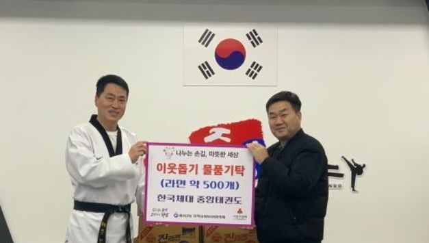 뉴스100 김동초 기자 | 하남시 미사2동 행정복지센터는 지난 12월 30일, 망월동에 소재한 한국체대중앙태권도(관장 이현석) 원생들이 정성껏 모은 라면 500개를 취약계층을 위해 기부했다고 밝혔다. 한국체대중앙태권도는 매년 미사2동에 라면 기부를 이어오고 있으며, 이번 기부는 아이들이 나눔의 의미를 배우고 실천하기 위해 자발적으로 참여해 마련한 것으로, 원생 한 명 한 명이 라면을 하나씩 준비해 모은 물품이라는 점에서 더욱 뜻깊다. 아이들은 작은 나눔이 모이면 큰 도움이 될 수 있다는 것을 직접 경험하며 이웃사랑의 가치를 배웠다. 이번에 기탁된 라면 500개는 경기 사회복지공동모금회를 통하여 관내 저소득 가구 및 취약계층에게 전달될 예정이다. 한국체대중앙태권도 이현석 관장은 “아이들이 나눔을 일상 속에서 자연스럽게 실천하길 바라는 마음으로 이번 기부를 진행했다”라며 “이번 경험이 아이들에게 따뜻한 기억으로 남고, 앞으로도 나눔을 이어가는 계기가 되길 바란다”라고 전했다. 미사2동 행정복지센터 박상규 동장은“아이들의 순수한 마음이 담긴 기부라 더욱 감동적이며, 소중한 마음을 잘 전달하겠다”라고 말했