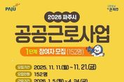 뉴스100 김동초 기자 | 파주시는 5일부터 2026년 1단계 공공근로사업을 본격적으로 시작했다고 밝혔다. 이번 사업을 통해 선발된 152명의 공공근로 참여자들은 관내 147곳의 사업장에 배치돼 첫 근무를 시작했다. 공공근로사업은 실직 상태이거나 정기적인 소득이 없는 18세 이상 파주시민을 대상으로, ▲공공서비스 ▲환경 정비 ▲전산화 등 3개 분야의 한시적 공공일자리를 제공하는 사업이다. 시는 지난해 11월 2026년 1단계 공공근로사업 참여자 152명을 모집했으며, 총 464명이 지원해 약 3대 1의 경쟁률을 보였다. 이번 선발 인원은 코로나19로 행정 수요가 급증했던 2022년 1단계 공공근로사업에서 175명을 선발한 이후 가장 많은 규모로, 민생 안정과 지역경제 활성화를 위한 시의 적극적인 의지가 반영된 것으로 평가된다. 참여자들은 1월 5일부터 4월 24일까지 약 4개월간 근무하게 되며, 임금은 2026년 파주시 생활임금 기준에 따라 시간당 1만 2,070원이 지급된다. 또한 근무 조건에 따라 주휴수당과 연차수당도 함께 지급된다. 파주시 관계자는 “공공근로사업이 단순한 재정 지원
