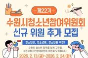 뉴스100 김동초 기자 | 수원시청소년청년재단(이사장 최종진)은 수원시 청소년의 정책 참여 확대와 권익 증진을 위해 '제22기 수원시청소년참여위원회' 위원을 추가 모집한다고 밝혔다. 수원시청소년참여위원회는 청소년기본법5조의2(청소년자치권의 확대)에 따라 청소년이 직접 정책 제안과 의견 개진에 참여하며 청소년 정책의 실효성을 높이기 위해 운영되는 공식 참여기구이다. 이번 추가 모집은 수원시에 거주하는 9세부터 24세까지의 청소년을 대상으로 하며 총 20명 내외를 선발할 예정이다. 활동 기간은 2026년 3월부터 12월까지이며 주요 활동 내용은 △수원시 청소년 정책 제안‧발굴 및 자문 △정책 관련 전문교육 참여 △청소년축제 기획 및 운영 △경기도 청소년참여위원회 및 관내 참여기구 교류 활동 등이다. 참여위원회 위원에게는 수원시장 명의의 위촉장이 수여되며 활동에 따라 봉사시간도 부여된다. 모집 기간은 2026년 2월 13일부터 2월 24일까지이며 신청은 재단 홈페이지 또는 수원시청소년청년재단 경영지원실로 문의하면 된다. [뉴스출처 : 수원시청소년청년재단]