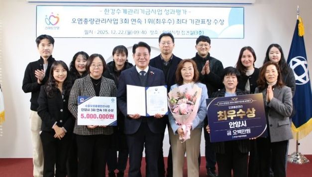 뉴스100 김동초 기자 | 안양시는 한강유역환경청 주관 ‘2024 회계연도 한강수계관리기금사업 성과평가’에서 한강수계 관리청 34곳 중 오염총량관리사업 분야에서 3회 연속 1위(최우수)를 달성했다고 22일 밝혔다. 시는 이번 평가로 2020・2022 회계연도에 이어 관리청 중 최초로 3회 연속 1위(최우수) 관리청으로 선정됐으며, 관리청 중 ‘최다 1위’라는 기록도 달성했다. 한강유역환경청은 한강수계관리기금 운영의 투명성, 사업 추진의 효율성 제고를 위해 오염총량관리사업 분야에 대한 성과 평가를 격년으로 실시하고 있다. 이번 성과평가는 한강수계 서울・경기・인천・강원・충북 등 34개 광역시ㆍ도ㆍ시ㆍ군을 대상으로 ▲사업 관리의 적절성 ▲목표달성 및 성과 우수성 ▲예산의 효율성 ▲사업추진 과정의 소통ㆍ홍보 등에 대해 평가했다. 안양시는 2단계 수질오염총량제 시행과 다양한 수질개선 사업으로 2030년까지 안양A 단위유역의 목표수질을 생화학적 산소요구량(BOD) 6.2㎎/L 대비 5년 평균 143% 초과 달성했으며, 수질오염물질 배출량 산정프로그램을 자체 개발해 안양천 권역 지자체 간의 갈등을 해소하는 성과