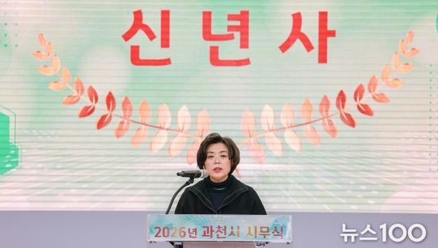 뉴스100 김동초 기자 | 과천시는 2일 시청 대강당에서 시무식을 열고, 신계용 시장의 신년사 발표를 통해 시 승격 40주년을 맞는 2026년의 시정 운영 방향을 시민과 공유했다. 신계용 과천시장은 신년사에서 “‘과천다운 시정으로 과천다운 변화’를 완성하겠다”라며 “첨단산업과 의료, 주거, 교통이 어우러진 자족 기반을 확충해 시민이 일상에서 체감할 수 있는 변화를 만들어 가겠다”라고 밝혔다. 과천시는 지난 한 해 동안 도시 지속가능성, 정주 여건, 재정 운영 등 다양한 분야에서 의미 있는 성과를 거두며, 도시 전반의 경쟁력과 행정 역량을 대내외적으로 인정받았다. 과천시는 올해 시민의 오랜 숙원 사업인 종합의료시설 조성을 본격적으로 추진하고, 미래 성장동력으로 육성 중인 푸드테크 산업 클러스터 조성에도 속도를 낼 계획이다. 이와 함께 과천~위례선을 비롯한 철도교통망과 도로교통망 확충을 집중 추진해 첨단도시 기반을 갖춘 기업도시로 나아간다는 구상이다. 교육·복지 분야에서는 통합교육지원청 분리 추진과 지식정보타운 단설중학교 개교, 시립요양원 안정화, 행복드림센터 건립 등을 통해 세대 간 균형 있는 성장을