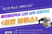 뉴스100 김동초 기자 | 군포시 중앙도서관은 시민이 직접 참여하는 낭독 콘텐츠 제작을 통해 공공 문화콘텐츠를 확산하고, 시민의 창작 경험을 지원하기 위해 미디어창작실 시민 낭독 프로젝트 '골든 보이스'를 운영한다. '골든 보이스'는 시민이 직접 문학 작품이나 개인 창작물을 낭독하고 이를 도서관 미디어창작실에서 전문 장비를 활용해 녹음·편집하여 오디오북 콘텐츠로 제작·공개하는 프로그램이다. 이번 프로젝트는 단순한 낭독 체험을 넘어 기존 활자에 국한됐던 작품을 시민의 목소리로 직접 듣고 나누는 참여형 프로그램으로 마련됐다. 낭독 경험이 많지 않더라도 문학과 낭독에 관심이 있는 시민이라면 누구나 참여할 수 있다. 프로그램은 2026년 3월 3일부터 5월 28일까지 중앙도서관 1층 미디어창작실에서 운영하며 참여 대상은 군포시 성인 10명 내외이다. 낭독 자료는 참여자의 개인 창작물(에세이, 시 등) 또는 저작권 보호기간이 만료된 한국 문학 작품을 활용한다. 참여 신청은 2026년 1월 26일부터 2월 20일까지 군포시 도서관 누리집을 통해 온라인으로 접수하며 선정된 참여자들은 단체 소통 채널을 개설해 약