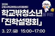 뉴스100 김동초 기자 | 군포시청소년재단 군포시학교밖청소년지원센터는 오는 2026년 3월 27일 학교 밖 청소년과 보호자 등을 대상으로 진학설명회를 개최한다. 이번 설명회는 매년 운영해 온 일반적인 사업설명회 방식에서 벗어나, 학교 밖 청소년과 보호자들이 실제로 궁금해하는 대학입시 정보와 진학 준비 과정에 초점을 맞춘 맞춤형 설명회로 마련됐다. 특히 검정고시 이후 진학을 고려하는 청소년들이 증가함에 따라, 대학 진학을 위한 다양한 전형 정보와 준비 방법을 보다 체계적으로 안내할 예정이다. 1부 설명회에서는 ▲학교 밖 청소년의 대학 진학 경로 ▲검정고시 기반 대학입시전형 이해 ▲대학 지원 전략 및 준비 방법 등 실제 진학 과정에 도움이 되는 정보를 중심으로 안내가 이루어질 예정이다. 2부 같이살롱 토크에서는 실무자와 함께 자유로운 분위기에서 ▲진학·프로그램·지원서비스 등 참석자들이 궁금한 사항을 직접 질문하고 상담할 수 있는 시간도 마련될 예정이다. 군포시학교밖청소년지원센터 강연미 센터장은 “학교 밖 청소년과 보호자들이 대학입시에 대한 정보 접근에 어려움을 겪는 경우가 많다”며 “이번 설명회를 통해