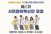 뉴스100 김동초 기자 | 여주도시공사는 여주시민 및 이용 고객들의 다양한 의견을 수렴하고, 함께 문제를 해결하는 시민참여형 활동의 일환인 ‘시민참여혁신단 8기’를 모집한다고 밝혔다. 시민참여혁신단은 공사 시설 및 서비스 품질경영에 대한 고객 의견을 적극적으로 수렴하고자 2019년부터 운영 중인 대표적인 시민참여활동이다. 2026년 운영되는 시민참여혁신단 8기는 4월 27일부터 5월 8일까지 모집하며, 활동기간은 2026년 6월부터 12월까지이다. 선발된 혁신단은 공사의 시설·서비스·홍보에 대한 모니터링 활동과 혁신 아이디어 제안을 위한 운영회의 등 다양한 활동을 추진할 예정이다. 지원 자격은 공사의 시설 및 서비스에 관심이 있는 만 18세 이상의 여주시민 및 이용 고객이라면 누구나 가능하다. 공사 김철환 사장은 “시민참여혁신단은 시민과 이용 고객이 직접 참여해 공사의 문제를 함께 고민하고 개선 방안을 찾는 소중한 창구”라며, “공공시설과 서비스에 관심이 있는 시민 여러분의 많은 참여를 부탁드린다”고 말했다. 지원 방법은 여주도시공사 홈페이지 공지사항에서 지원서 및 관련 서류를 작성한