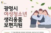 뉴스100 김동초 기자 | 광명시가 4일부터 청소년의 건강권과 인권 보장을 위해 ‘여성청소년 생리용품 보편지원 사업’ 신청을 받는다. 지원 대상은 광명시에 주민등록을 둔 11세부터 18세까지(2008. 1. 1.~2015. 12. 31. 출생) 여성청소년이며, 등록외국인과 국내거소신고자도 포함한다. 지원금은 1인당 월 1만 4천 원, 연 최대 16만 8천 원으로, 오는 4월 20일부터 광명사랑화폐 생리용품 전용 모바일 카드로 지급할 예정이다. 지원금은 올해 12월 31일까지 사용할 수 있으며, 기한 내 사용하지 않은 금액은 소멸한다. 단, 2026년 1월 이후 전입자는 전입 시기에 따라 지원 금액이 달라질 수 있다. 생리용품은 광명시 내 씨유(CU), 지에스(GS)25, 세븐일레븐, 이마트24 등 지역화폐 가맹 편의점에서 구매할 수 있고, 배달특급 앱과 연계된 온라인 쇼핑몰에서도 이용 가능하다. 신청은 3월 5일부터 3월 31일까지 ‘경기민원24’에서 온라인으로 하거나, 3월 4일부터 11월 13일까지 주소지 관할 동 행정복지센터를 방문하면 된다. 예산 소진 시 조기 마감할 수 있다.