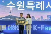 뉴스100 김동초 기자 | 수원특례시가 ‘제6회 대한민국 축제 엑스포 베스트 축제 어워드’에서 기초자치단체 부문 대상을 받았다. 시상식은 19일 수원컨벤센센터에서 열렸다. 수원시는 17~19일 수원컨벤션센터에서 열린 제6회 대한민국 축제 엑스포에 참가해 부스를 운영하며 ‘2026-2027 수원 방문의 해’와 수원화성문화제, 정조대왕능행차 공동재현, 수원화성 미디어아트 등 수원시를 대표하는 축제를 방문객들에게 홍보했다. 베스트 축제 어워드 수상 지자체는 홍보 부스 운영계획, 프로그램 참여도, 현장 평가 등을 종합적으로 평가해 선정한다. 수원시는 마케팅, 콘텐츠, 부스 운영, 대중 선호도 등 모든 분야에서 우수한 성과를 인정받아 최고점을 받았다. 시상식에 참석한 선은임 수원시 문화관광체육국장은 “대한민국 축제 엑스포에서 수원의 축제 역량을 인정받고, 대상을 받게 돼 기쁘다”며 “앞으로도 차별화된 콘텐츠로 글로벌 축제 도시로서 위상을 높여 나가겠다”고 밝혔다. 대한민국 축제 엑스포는 전국의 대표 축제들을 만날 수 있는 국내 최대 축제 전문 박람회다. [뉴스출처 : 경기도 수원시]