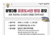 뉴스100 김동초 기자 | 광명시가 광명3동 새 도서관의 이름을 지어줄 주인공을 찾는다. 시는 올해 10월 개관 예정인 ‘광명3동 공공도서관’ 명칭 공모를 9일부터 30일까지 22일간 진행한다고 9일 밝혔다. 광명3동 공공도서관은 광명3동 공공복합청사(광명동 104-9) 내 지상 5~6층에 연면적 1천600㎡ 규모로 조성ᅟᅡᆫ다. 어린이·종합 자료실을 비롯해 실감 놀이터, 어린이 창작공간, 강의실, 동아리실 등 전 세대가 함께 이용할 수 있는 복합문화공간으로 운영할 예정이다. 이번 명칭 공모는 도서관이 시민의 일상과 가장 가까운 생활 문화공간으로 자리 잡을 수 있도록, 공간의 성격과 가치를 잘 담아내면서도 모두에게 친숙한 이름을 찾기 위해 마련했다. 명칭의 적합성, 창의성, 대중성 등을 종합적으로 평가해 최우수상 1건(10만 원), 우수상 1건(7만 원), 장려상 1건(5만 원)을 선정하고, 온누리상품권으로 시상할 계획이다. 선정 결과는 오는 2월 중 광명시도서관 누리집에서 공개한다. 명칭 공모는 도서관에 관심 있는 누구나 참여할 수 있다. 온라인 양식을 작성해 제출하거나, 광명3동 행