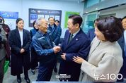 뉴스100 김동초 기자 | 이재명 대통령과 김혜경 여사는 오늘 낮, 설 명절을 앞두고 충북 충주시에 위치한 무학시장을 찾아 지역 세밑 물가를 점검하고 상인들을 만나 현장 의견을 청취했다. 무학시장은 지난 1978년 노점상들의 정착을 위해 개설된 전통시장이며, 이번 방문은 설 민심을 청취하기 위한 민생 행보의 일환이다. 이 대통령과 김 여사는 시장 내 여러 상점을 들러 “새해 복 많이 받으세요”라며 인사를 했고, 상인과 시민들은 환호와 박수로 이 대통령 부부를 맞았다. 이 대통령 부부에게 더덕을 판매한 상인은 “덕분에 마수걸이를 한다”며 “오늘 장사가 잘될 것 같다”고 말해 웃음을 자아냈다. 다른 상인들도 “힘나게 해주셔서 감사하다”, “너무 고생 많으시다”며 인사를 전했다. 이 대통령 부부는 황태포, 시금치, 곶감과 깐밤 등 제수용품과 먹거리를 구입했고 백도라지, 마른 멸치, 배추전 등을 즉석에서 맛보기도 했다. 이 대통령 부부는 온누리상품권과 현금으로 결제했다. 김 여사가 물건을 고르는 사이 이 대통령은 상인들에게 “장사는 잘 되느냐”, “곧 설인데 어떠시냐”고 물었다. 정육점 사장은