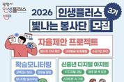 뉴스100 김동초 기자 | 광명시 인생플러스센터가 ‘2026년 인생플러스 빛나는 봉사단’ 제3기 봉사자 40명을 2월 23일부터 3월 11일까지 모집한다. ‘인생플러스 빛나는 봉사단’은 40~64세 광명시 중장년이 지닌 지식과 역량을 평생학습 자원으로 확장해 지역공동체에 필요한 변화를 함께 만들어가는 ‘재능활용 학습실천’ 자원봉사 활동이다. 지난 1‧2기 활동에는 총 50명의 봉사자가 참여해 ▲아동 학습보조 및 책놀이 ▲1:1 디지털 코칭 ‘신중년 디지털 아지트’ ▲어르신 아로마 향기테라피 ▲중장년 드론 조종 체험 등 다양한 활동을 펼쳤다. 이들은 총 413회, 누적 1천358시간에 걸친 봉사활동으로 지역사회에 활력을 불어넣었다는 평가를 받았다. 이번 3기 모집 분야는 크게 현장지원형(10명)과 프로젝트형(30명)으로 나뉜다. 현장지원형은 센터 프로그램 운영과 행사 안내를 돕는 ‘인생플러스 서포터즈’와 교육강사 보조 및 모니터링 일지를 작성하는 ‘학습 모니터링’으로 운영한다. 프로젝트형은 ‘신중년 디지털 아지트(1:1 코칭)’, ‘초등학생 책 낭독놀이’를 비롯해 봉사자가 직접 프로그램을