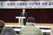 뉴스100 김동초 기자 | 부천시는 지난 17일 시청 소통마당에서 시 공무원과 산하기관 직원 등 80여 명이 참석한 가운데 ‘국제행사 직무역량 강화 교육’을 실시했다. 이번 교육은 지방정부의 국제교류와 국제행사 중요성이 확대됨에 따라 공직자의 국제행사 기획·운영 역량을 높이고, 글로벌 업무 대응 능력을 강화하기 위해 마련됐다. 또한, 대한민국시도지사협의회 협조로 추진해 지방외교 관련 사업을 소개하고 지방정부 국제행사의 역할과 발전 방향에 대한 이해를 높이는 시간으로 진행됐다. 이날 교육에서는 신규 공무원으로 구성된 글로벌 서포터즈 위촉장 수여식도 함께 진행됐다. 글로벌 서포터즈는 부천시 공무원으로 구성된 외국어 자원봉사단으로, 국제행사와 외국인 관련 사업 현장에서 통역과 외국어 지원을 담당하며 시의 국제교류 역량을 높이는 역할을 하고 있다. 현재 약 50명 규모로 운영 중이며, 부천국제청소년홈스테이 등 주요 국제교류 행사에서 다양한 활동을 이어가고 있다. 이어진 교육에서는 윤영혜 동덕여자대학교 글로벌MICE융합전공 주임교수가 강사로 나서 △글로벌 시대 지방외교의 중요성 △국제행사 정책 동향 △성공적