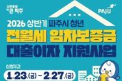 뉴스100 김동초 기자 | 파주시는 청년가구의 주거비 부담을 완화하기 위한 청년 전월세 임차보증금 대출이자 지원사업 신청을 오는 1월 23일부터 2월 27일까지 받는다. ‘청년 전월세 임차보증금 대출이자 지원’은 파주시에 주민등록을 둔 무주택 가구 중 제1금융권에서 전월세 보증금 대출을 받은 19~39세 청년에게 대출 잔액의 2% 이자(연 최대 200만 원)를 지원하는 사업으로, 상·하반기 각 10가구를 선정해 최대 100만 원씩 반기별로 총 2회 지급한다. 신청 대상은 1986년 1월 20일부터 2007년 1월 21일 사이에 출생한 청년으로 하며, ▲공고일 기준 세대원 전원 무주택자 ▲기준 중위소득 180% 이하(1인 가구 기준 461만 6천 원) ▲파주시에 소재한 주택으로 전세 임차보증금 3억 이하(월세의 경우 전월세 전환율 6.7% 이하) 및 전용면적 85㎡ 이하의 주택에 거주해야 한다. 단, 기초생활보장수급자(생계, 의료, 주거급여)와 공공임대주택 거주자, 버팀목 대출 등 주택도시기금을 통해 전세자금을 대출받은 사람, 금융권의 대출 용도가 신용·일반 용도인 경우는 지원 대상에서 제외된다. 지