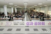 뉴스100 김동초 기자 | 양평군은 지난 18일 군청 대회의실에서 찾아가는 민관협력 보건복지 서비스 ‘달리는 행복나눔 이웃들’ 사업의 10주년을 기념하는 성과공유회를 성황리에 개최했다고 밝혔다. 이번 성과공유회는 사업 10주년을 맞아 그간의 운영 성과를 공유하고 참여자의 노고를 격려하기 위해 마련된 자리로, 관내 유관기관 기관장과 실무자, 자원봉사자 등 80여 명이 참석해 의미를 더했다. 행사는 1부 특강과 공연을 시작으로, 2부에서는 사업 성과 영상 시청과 참여기관 및 유공자 포상 순으로 진행됐다. 특히 지난 10년 동안 복지·건강·여가 분야의 다양한 기관과 단체가 협력해 매주 1회 마을회관 등을 직접 찾아가 맞춤형 보건복지 서비스를 지속적으로 제공해 왔다는 점에서 참석자들의 큰 공감과 호응을 얻었다. 전진선 양평군수는 “지난 10년간 ‘달리는 행복나눔 이웃들’ 사업이 꾸준히 이어질 수 있었던 것은 현장에서 묵묵히 함께해 주신 참여기관과 자원봉사자 여러분 덕분”이라며 “앞으로도 ‘달리는 행복나눔 이웃들’을 중심으로 찾아가는 보건복지 서비스를 확대해 군민이 체감하는 따뜻한 복지를 실현해 나가겠다”고 강조했다.