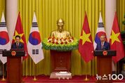뉴스100 김동초 기자 | 베트남을 국빈 방문한 이재명 대통령은 22일(현지시간) "양국은 2030년까지 교역 규모 1500억 불 목표 달성을 위해 교역·투자 협력을 더욱 호혜적으로 발전시켜 나가기로 했다"고 밝혔다. 이 대통령은 이날 또 럼 베트남 서기장 겸 국가주석과 하노이에 위치한 주석궁에서 정상회담 후 가진 공동언론발표를 통해 이 같이 말했다. 이 대통령은 발표를 통해 "베트남은 대한민국의 3위 교역·투자국이고, 한국은 베트남의 최대 투자국"라며 "약 1만 개의 한국 기업이 석유화학, 조선, 철강, 전자를 아우르는 전 분야에 진출해 높은 수준의 경제 연대를 이루고 있다"고 협력 관계를 강조했다. 또 "한국은 베트남의 '2045년 고소득 선진국 진입' 비전 실현을 위한 최적의 파트너로서, 물류, 교통, 에너지, 인프라와 같은 하드웨어 분야에서부터 과학기술, 지적재산, 창조산업 등 미래 산업 분야까지 전방위적인 협력을 추진하고 있다"고 덧붙였다. 이 대통령은 "이번 정상회담에서 '포괄적 전략 동반자' 협력을 더욱 공고히 하기로 했다"며 회담 주요 성과를 소개했다. 교역·투